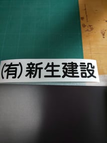 カッティングシートの黒色で、漢字5文字を切抜いて、周囲の不要な黒シートを取り去ります。その上から、透明のアプリケーションという粘着ビニールを貼り載せた状態が上の写真です。