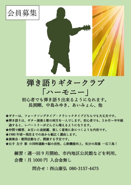 今日は、私が会長をするギター弾き語りクラブのポスターをワードを使用して作りました。